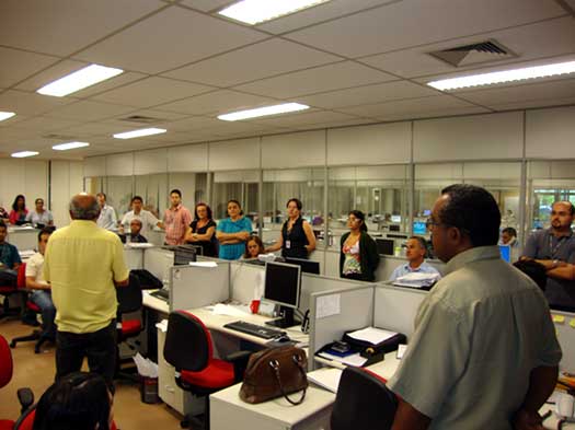 Com o objetivo de escutar as demandas e inquietações dos funcionários da Central de Retaguarda Operacional (CRO) do Ceará, diante dos ajustes referentes ao novo plano de funções, dirigentes da Associação dos Funcionários do BNB (AFBNB) visitaram a unidade na tarde de hoje, 13 de abril, localizada no centro administrativo do Passaré. Participaram, pela AFBNB, o presidente da Associação, José Frota de Medeiros, e os diretores Dorisval de Lima e Alci Lacerda.